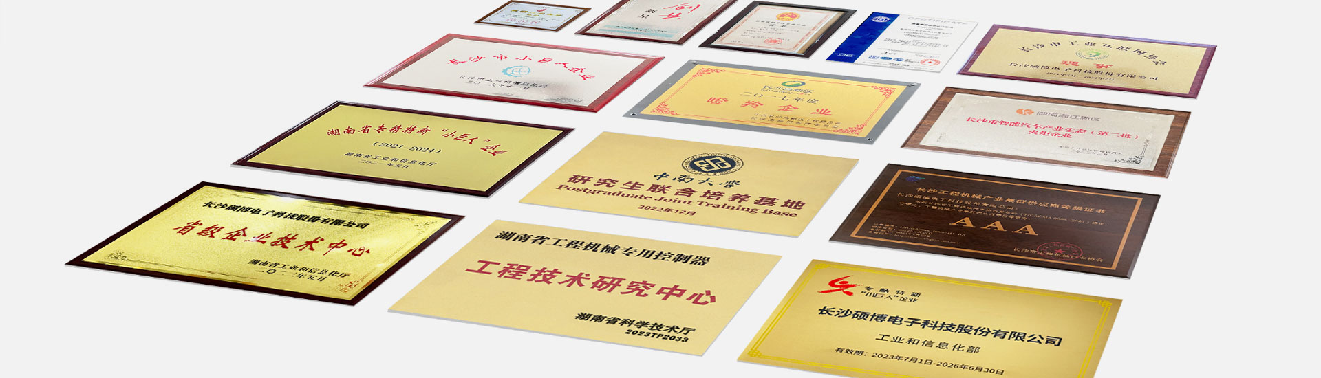 碩博電子致力于發(fā)展與創(chuàng)新,不斷超越自我,先后榮獲“湖南省科學(xué)技術(shù)進(jìn)步獎”、“長沙市創(chuàng)業(yè)新星”、“第四屆中國創(chuàng)新創(chuàng)業(yè)大賽優(yōu)秀企業(yè)獎”、“長沙高新區(qū)2017年度瞪羚企業(yè)”、“湖南省質(zhì)量標(biāo)桿企業(yè)”、“湖南省綠色工廠”等榮譽(yù),先后獲批“湖南省省級企業(yè)技術(shù)中心”、“國家專精特新小巨人企業(yè)”、“湖南省工程機(jī)械專用控制器工程技術(shù)研究中心”、“長沙市企業(yè)技術(shù)中心”、“長沙市技術(shù)創(chuàng)新中心”、“高級工程師工作室”等。